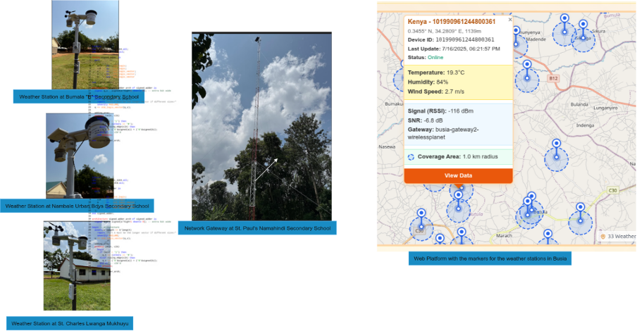 The deployment has also been done within the “Africa LoRaWAN Community” concept that targets to set-up LoRaWAN infrastructure across Africa (in partnership with the African Advanced Level Telecommunications Institute [AFRALTI]) to support Internet of Things (IoT) innovation on the African continent. In both Sub-counties, two multichannel LoRaWAN gateways have been installed at St. Mary’s Girls Butula Primary School and St. Paul’s Namahindi Secondary School. The networks provide a low-power, wide area network capability of transmitting data from all the IoT-based weather stations within the two sub-counties without a need of SIM card technology.